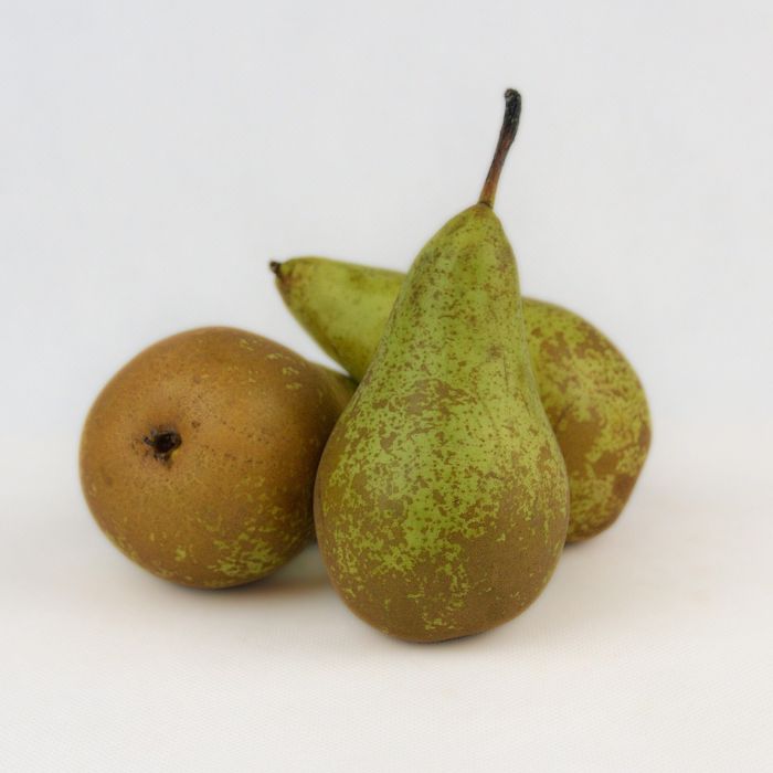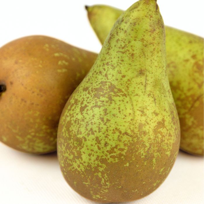 Grusza Konferencja to popularna, jesienna odmiana o wydłużonych, wrzecionowatych owocach z charakterystycznym brązowo-złotym ordzawieniem na zielonkawej skórce. Miąższ jest żółtawobiały, bardzo soczysty, słodki i aromatyczny, idealny do bezpośredniego spożycia. Jest to odmiana deserowa, ceniona za plenność, łatwość uprawy i dobrą zdolność przechowalniczą.