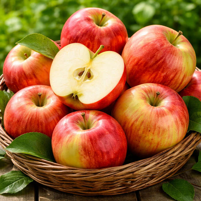 - Smak i miąższ: Kremowobiały, bardzo soczysty, zwarty i chrupiący miąższ o zrównoważonym, słodko-kwaskowatym smaku.