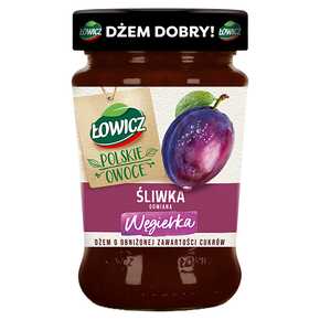 Dżem śliwkowy o obniżonej zawartości cukrów.* Pasteryzowany. *Produkt zawiera ponad 30 % mniej cukrów niż dżemy o łącznej zawartości cukrów 60 g na 100 g produktu.