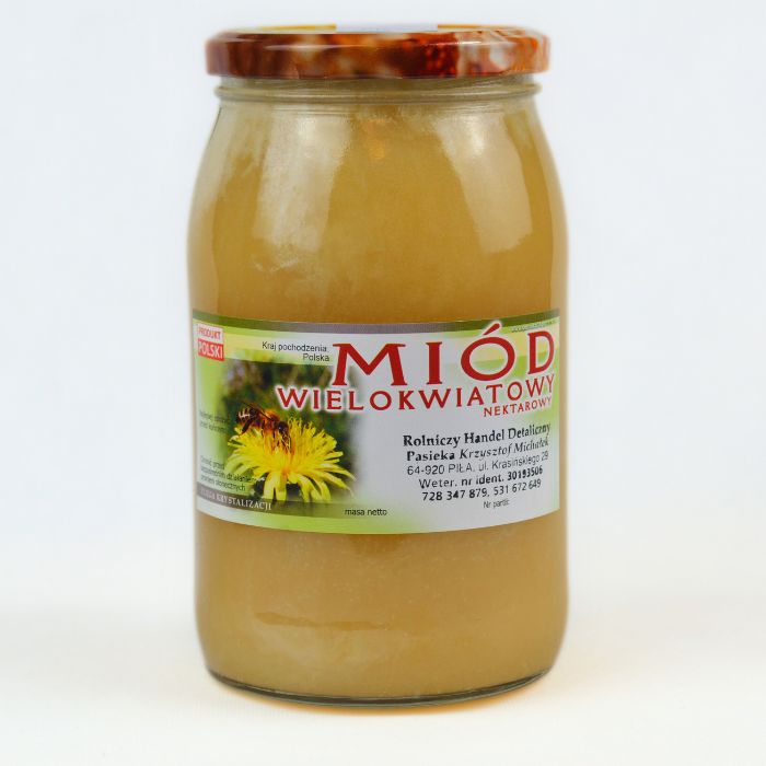 Miód wielokwiatowy 1,2 kg/900 ml.